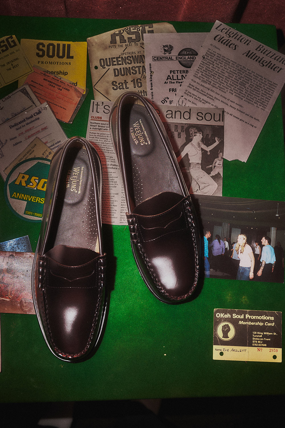 G.H.BASSのローファーは、長年にわたりブリストル・ノーザンソウル・クラブにとって欠かせない存在であり、その記憶とカルチャーを足元から支え続けてきました。履き込まれ、馴染み、日常の中で刻まれていく——それこそがG.H.BASSのローファーの本質であり、ノーザンソウルが実際の人生の中で生き継がれていく姿と重なります。