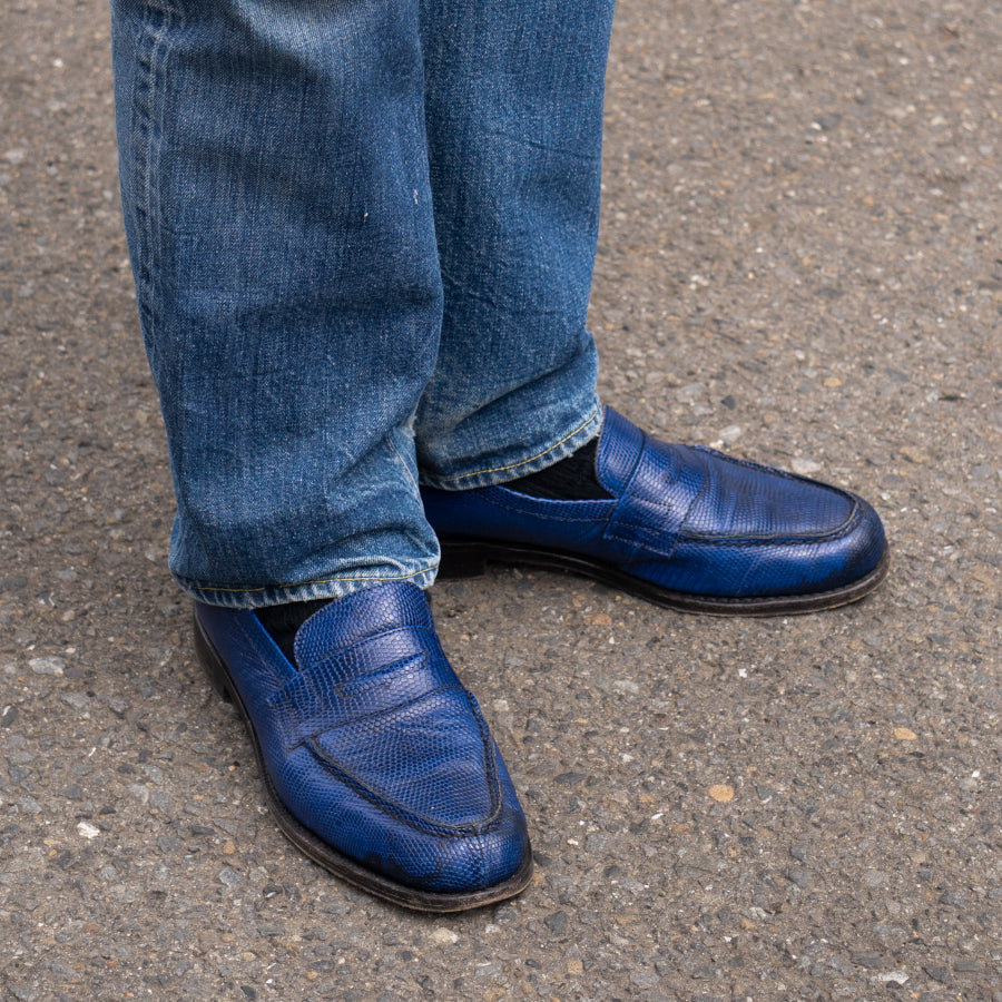 一見キザに見える素材ですがカジュアルに履くと調和するのでバリエーションとして欲しいと思っていました。