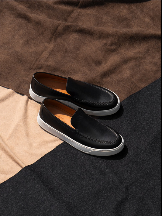 程よくスポーティーでありながら革靴のような上質感を備え、セットアップなどのビジカジスタイルにも違和感なくマッチ。