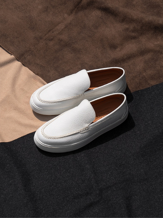 スリッポンタイプで紐のないシンプルなデザインは合わせる服を選ばず、休日のリラックスした装いからセットアップなどのビジカジスタイルまで幅広くカバーしてくれます。