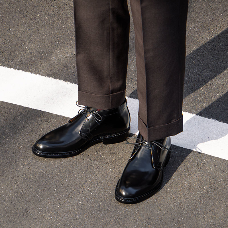 革靴ならではのドレッシーな要素とスポーツ由来のカジュアルな要素を併せ持つチャッカブーツは、上品なキレイめからラフなワーク系まで幅広いコーディネートにマッチ。パンツの丈感に気を付けるだけでぐっとお洒落に履きこなすことができます。