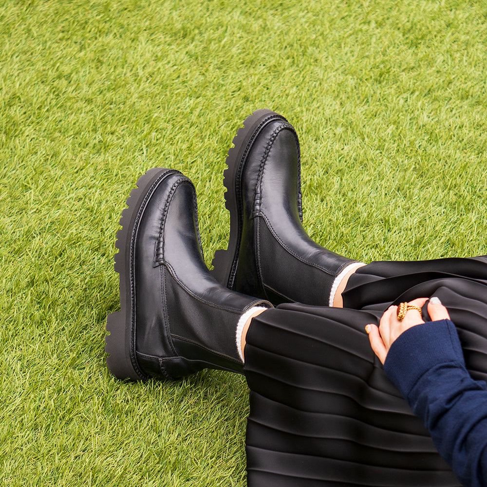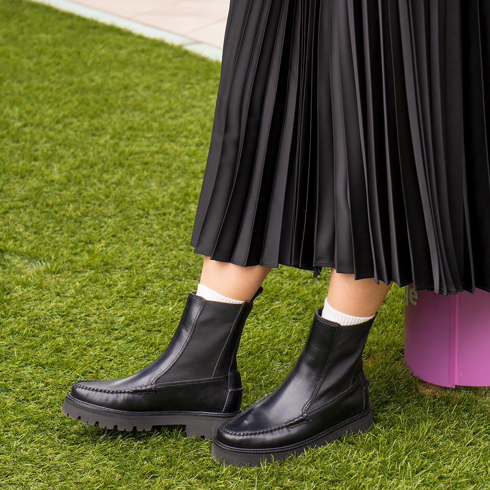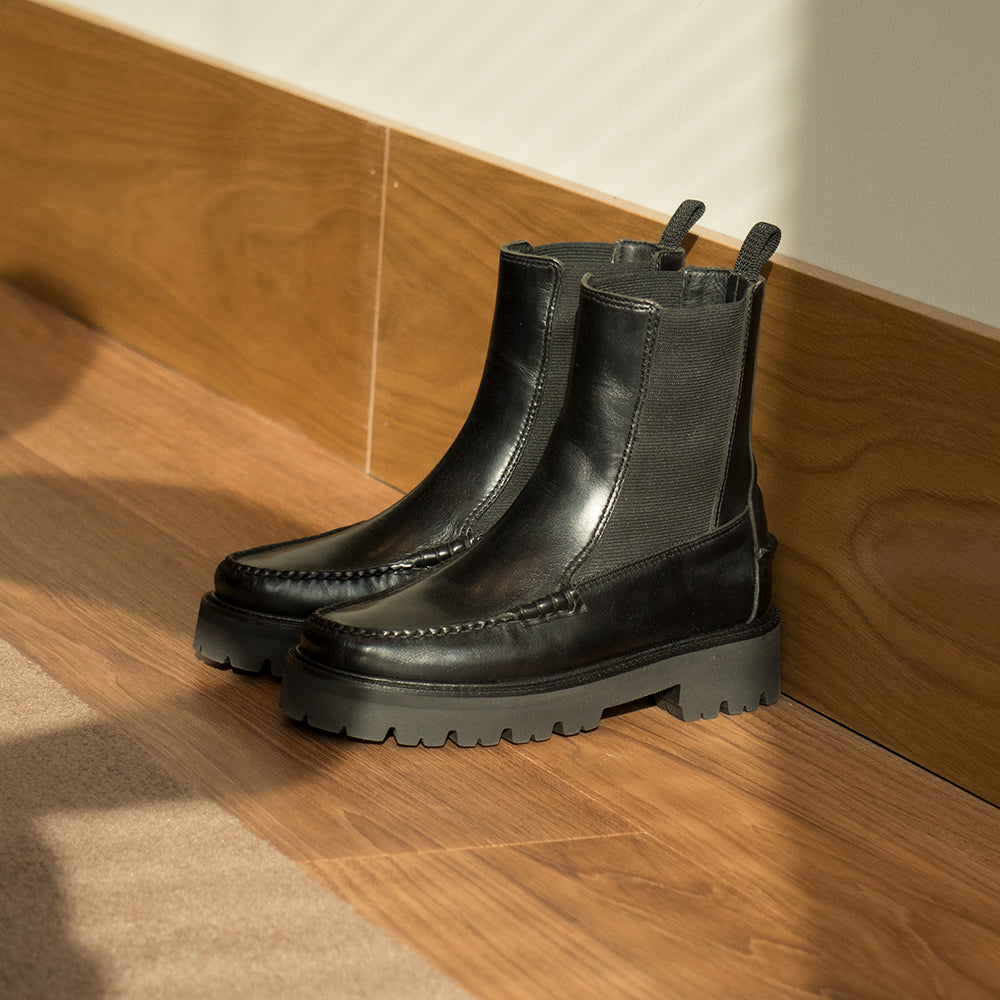 足首を覆うサイドゴアブーツは、ベーシックとカジュアル両面のスタイルを演出するのに最適。