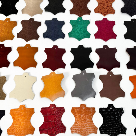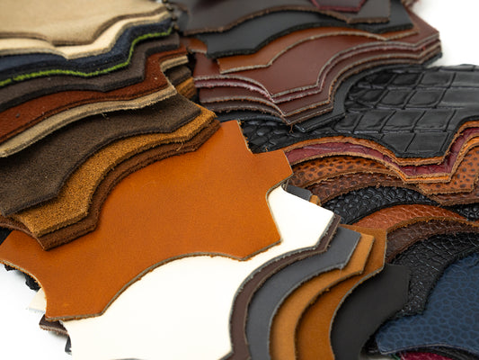 スムースレザー・グレインレザー・スエードなど、厳選された約30種類のレザーより最大2種類をお選びいただけます。