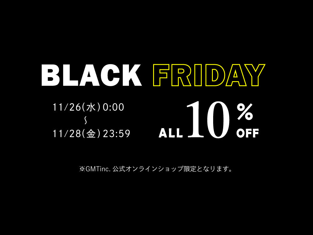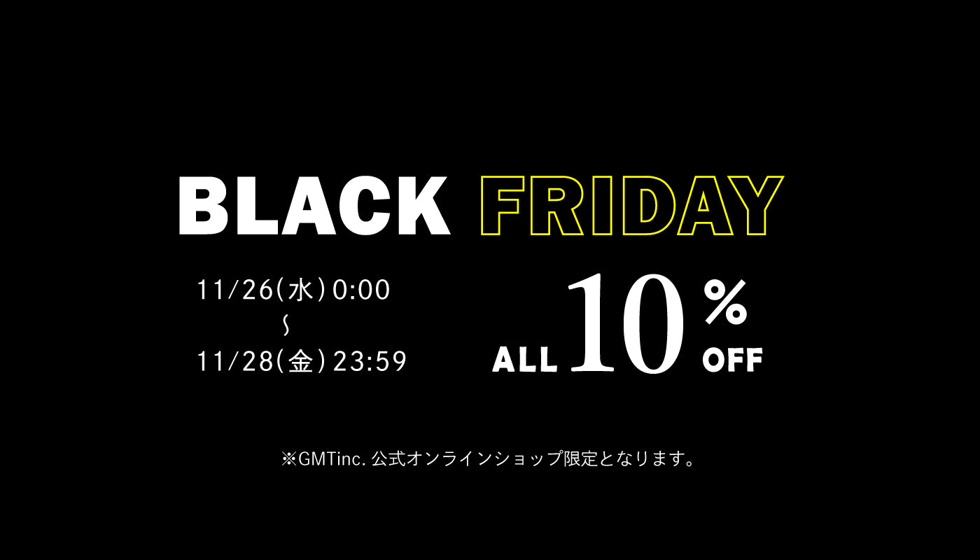日頃のご愛顧に感謝の気持ちを込めまして、11月26日(水)00:00より11月28日(金)の期間、全商品対象「BLACK FRIDAY 10%OFFキャンペーン」を開催いたします。