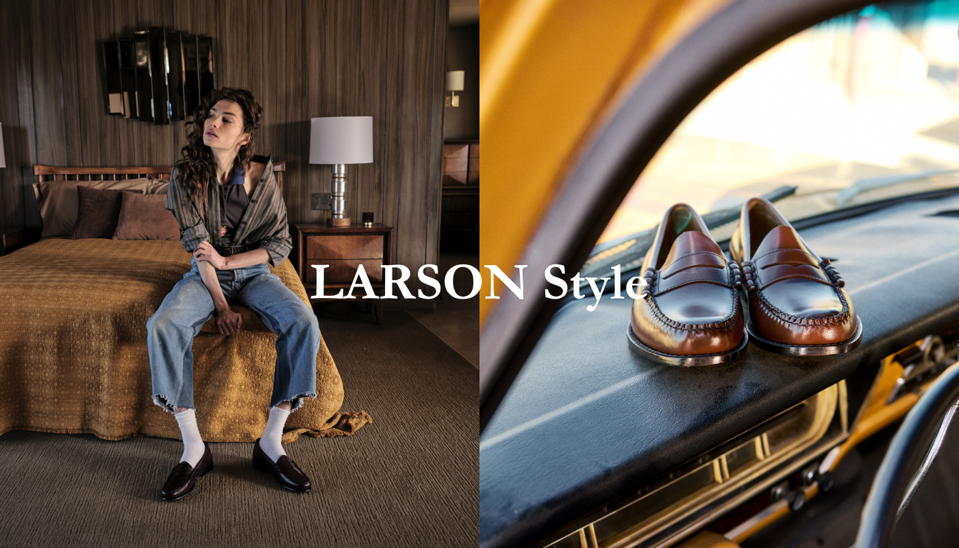 ジーエイチバスのローファーの中で王道とされているモデルが『LARSON(ラーソン)』。ブランドを象徴するマスターピースです。そのシンプルで普遍的なスタイルは、経験豊かなミドル世代からファッションに敏感な若者世代までを魅了しています。